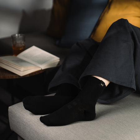 These socks fit perfectly for small feet and are very comfortable. They keep my feet warm without being bulky, and the arch support is excellent. Great combination of comfort and function!